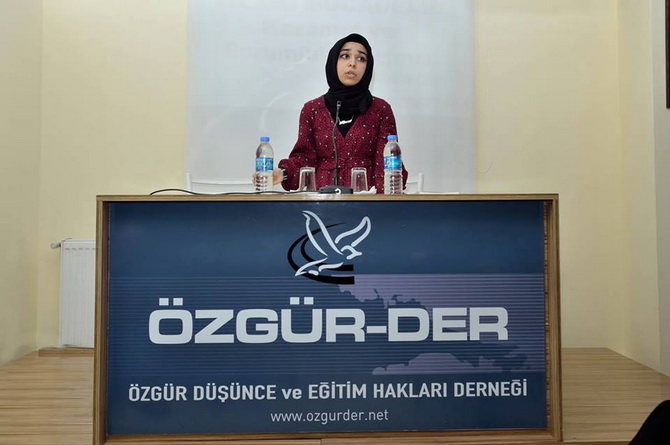 Program öncesi Özgür-Der Çorum Şubesi Çocuk Kulübü sorumlularından Nur Sümeyye Karaoğlan, çocuk etkinlikleri hakkında kısa bir tanıtım gerçekleştirdi.