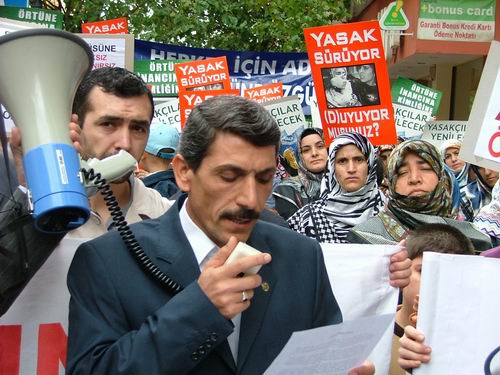 Eylemin sunumunu yapan Mehmet Deniz başörtüsü sorununun hala yakıcılığını koruduğunu ancak gündemden düşürülmek istendiğini belirterek eylemlerimizle sorunun unutulmasına izin vermeyeceklerini ifade etti. Zulüm sürdükçe direnişin de süreceğinin altını çizen Deniz ardından sözü Eğitim-Bir-Sen Diyarbakır şube başkanı Yasin Yıldız'a bıraktı. Yasin Yıldız İslam'ı hedef alan zalimlerin yenilgiye mahkum olduklarını söyleyerek başladığı konuşmasına genel hukuk kaidesine göre; hiçbir kanunun kendi toplumunun inançlarına, ahlaki kurallarına aykırı olamayacağını hatırlatarak devam etti. Mevcut uygulamanın anayasanın 24, 25 ve 42. maddelerine göre maddesine aykırı olduğunu anlatarak bir tarafta trilyonlarca para harcanarak "Haydi kızlar okula!" kampanyaları yürütülürken diğer taraftan bayanların başörtüsü bahane gösterilerek eğitim ve çalışma haklarının ellerlinden alındığını ifade etti. Mevcut siyasal iktidar onurunu koruyacak adımı bir an önce atmalıdır diyen Yıldız, ideolojik devlet anlayışının terk edilmesi, inanç ve düşüne özgürlüğü sağlanması, eğitimin önündeki tüm engellerin kaldırılması anadil eğitiminin önünün açılması, etnik ayrımcılığın engellenmesi ve devlet içindeki çetelerin tasfiye edilmesi gerektiğini anlatarak sözlerini sonlandırdı.