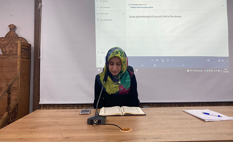 Yine günümüz problemlerinden biri olan sosyal medyada tesettürün yozlaştırılmasına değinen Turhan geçmişte yaşanan engellenme imtihanının, günümüzde müslümanlara salgın hastalık gibi bulaşan rehavet imtihanına dönüştüğünden bahsederek sözlerini bitirdi.
