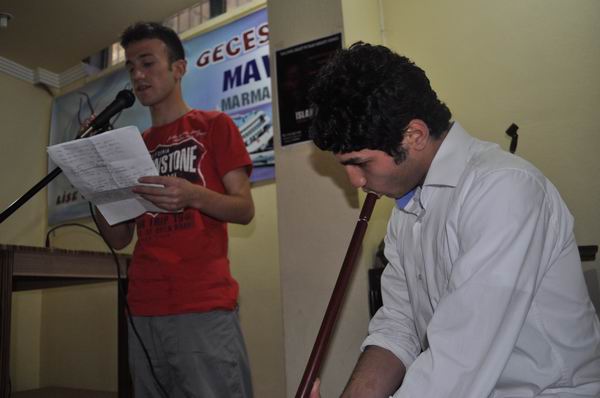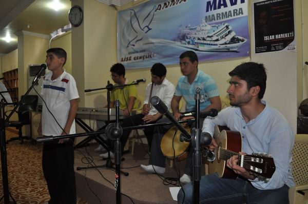 Çetin Aldemir'in yazdığı ve Mavi Marmara şehitlerine ithaf ettiği "Marmara Gazeli" adlı şiiri okumasının ardından sahneye çıkan "Özgür-Der Gençliği" müzik grubu, okuduğu ezgilerle duygulu anlar yaşattı. Program, Mahsum Erbay'ın okuduğu dua ile sona erdi.