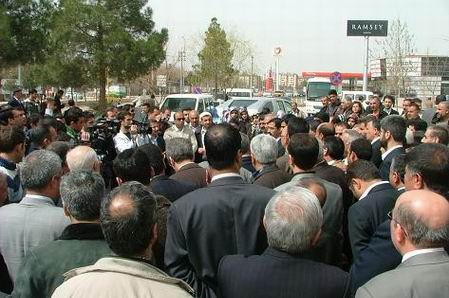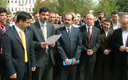 Dağ Kapı Adliye Sarayı önünde saat 11.00'de başlayan protesto açıklaması, Mazlum-Der Bölge Koordinatörü Selahattin Çoban'ın yaptığı giriş konuşmasıyla başladı. Çoban, DTP'nin kapatılması istemiyle açılan davaya, Ak Parti hakkında açılan kapatılma davasıyla devam edilmek istenmesinin kaygı verici olduğunu dile getirdi. Burada bulunma gerekçelerinin herhangi bir partiyi destekleme olarak algılanmaması gerektiğine dikkat çekti. Artık hiç bir gerekçeyle partilerin kapatılmaması gerektiğini belirterek, Ak Parti'yi dik durmaya ve parti kapatmayı zorlaştıracak yasal düzenlemeleri yapmaya çağırdı.