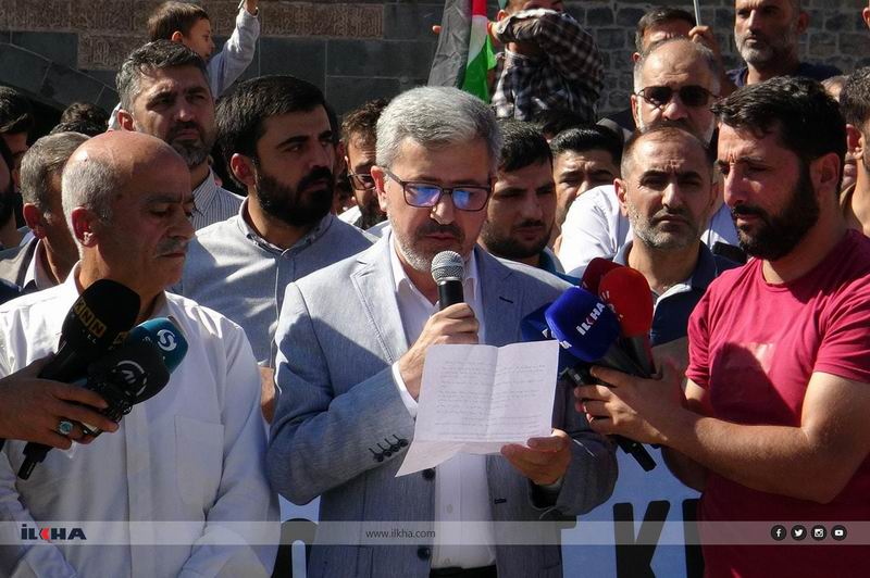 Eylemde Ramazan Tekdemir bir konuşma yaparken Özgür-Der Diyarbakır Şube Başkanı Murat Koç basın açıklamasını okudu ve AYDER Başkanı Fikret Özçelik duada bulundu.
