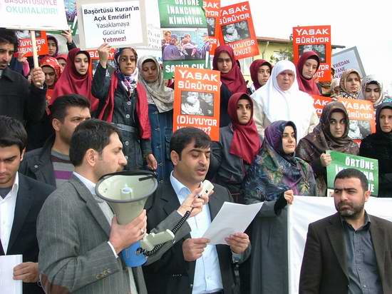 İslam'dan ve İslami hayat tarzının tüm yansımalarından açıkça nefret eden yasakçı anlayış, "kamusal alan" saçmalığının ürettiği keyfi bir dayatmayla; ilköğretim okullarından üniversitelere, özel sektörden resmi dairelere kadar her alanda başörtüsü yasağını hâlâ ısrarla uyguluyor. Sınav başvurularında başörtülü fotoğrafı kabul etmeyen, başörtülüleri sınav salonlarından çıkaran, başörtülü öğrencilerin üniversiteye kaydını engelleyen ve okul gezilerine katılan başörtülüleri otobüslerden indirecek denli faşistleşen egemen sistem, nefretini her fırsatta yeni uygulamalarla teşhir etmekten çekinmiyor.