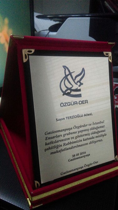 "Kermesimiz çekilen aile fotoğrafları, dualar, Şenel Mutlu hocamızın yaptığı kısa konuşma, ensar ablalarımız adına Reyhan Terzioğlu hanımefendiye sunulan teşekkür plaketi ve çocuklarımıza verilen hediyelerle son buldu.