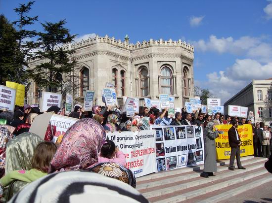 Anayasa Mahkemesi'nin temel haklara ve özgürlüklere karşı açık bir suç işlediğinin belirtildiği eylemde, askerî oligarşiye de yargı oligarşisine de özgürlüklerimizi teslim etmeyeceğimiz vurgulandı. İslam'ı bireysel ve toplumsal hayattan silme zorbalıklarına ve laiklik sopasıyla toplumu hizaya çekme, şekillendirme ve had bildirme teşebbüslerine karşı mücadele etmeyi sürdüreceklerini belirten konuşmacılar, siyasetin ve toplumun 12 Eylül darbe yasalarıyla rehin alındığına dikkat çekti.