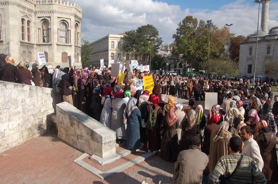 "Bu da Bizim Kararımız: Başörtüsüz Asla!" Başörtüsü düzenlemesini iptal eden AYM'nin gerekçeli kararı protestolarla karşılandı. İstanbul Beyazıt'ta İÜ önünde toplanan İslami kuruluşlar, Meclis'i yok sayan başörtüsü düşmanlarını protesto etti.