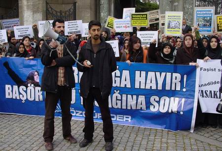Özgür-Der öğrenci gençliğini temsilen konuşan Zehra Ergül Kaya, 11 yıldır başörtüsü mücadelesini sürdürdüklerini ve hiçbir zaman yasakçılara teslim olmayacaklarını belirtti. Bu meydanlarda başörtüsü için olduğu gibi Kürt sorunu, militarizm, TCK