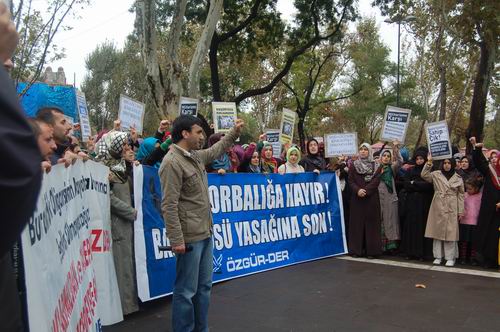 Özgür-Der tarafından Fatih Saraçhane Parkı'nda gerçekleştirilen Ramazan'ın son başörtüsü eyleminde "Bürokratik Oligarşinin Dayatmalarına Teslim Olmayacağız! Haklarımızdan ve Taleplerimizden Vazgeçmeyeceğiz!", "Zorbalığa Hayır; Başörtüsü Yasağına Son!" yazılı pankartlar açıldı. "Boğaziçi'nde Kimliğiyle Direnenleri Destekliyoruz!", "Militarizme Karşı, Orucumuzla, Namazımızla, Başörtümüzle Direnişteyiz!", "Üniversitelerde Sınırlı Af Değil; Gaspedilen Hakların İadesini İstiyoruz!", "Başörtüsüne Sahip Çık; Ergenekonculara, Darbecilere, Çetecilere Geçit Verme!" yazılı dövizlerin taşındığı eylemde herkes için adalet ve özgürlük talebinin altı çizildi.