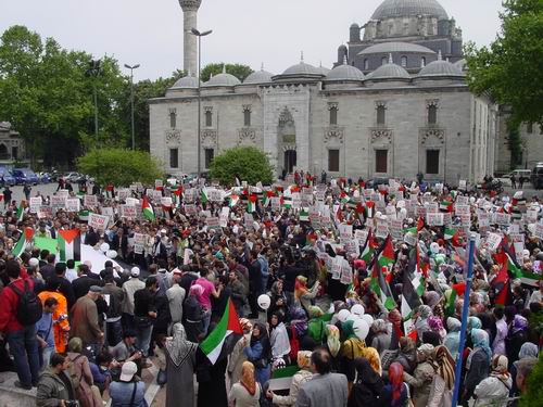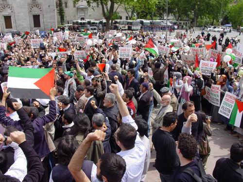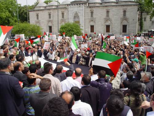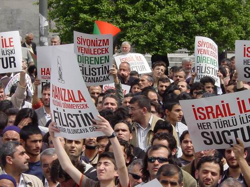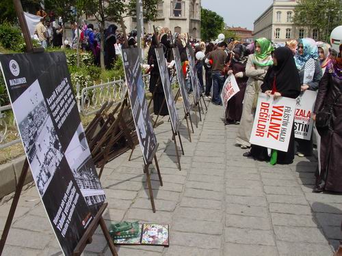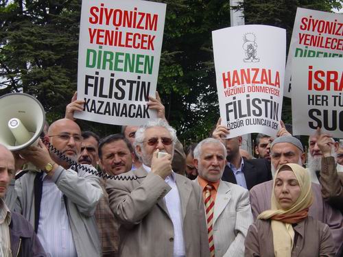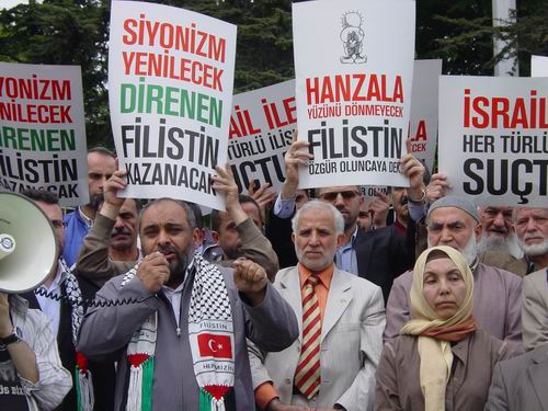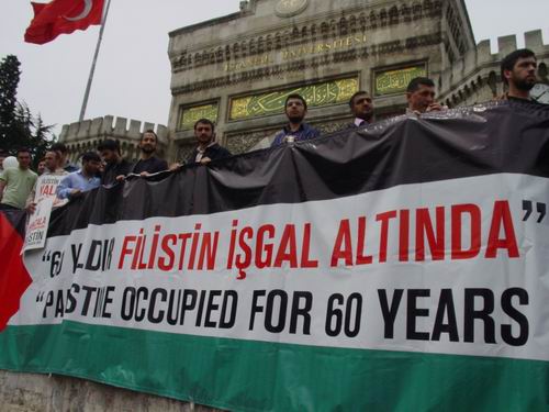 Bugün Siyonist İsrail rejiminin 60. kuruluş yıldönümü dolayısıyla İslami kuruluşların ortak katılımı ile Beyazıt Meydanı'nda protesto gösterisi düzenlendi. "60 Yıldır Filistin İşgal Altında" yazılı dev pankart ve Filistin bayrağının açıldığı eylemde coşkulu kalabalık işgal 100 yıl da sürse direnişin devam edeceğini ve İsrail'in meşrulaştırma çabalarına asla izin vermeyeceklerini ifade etti. Görsel açıdan zengin geçen eylemde kalabalık kitle ellerinde "Katillerle İşbirliği Yapmak Suçtur"; "Siyonizm Yenilecek Direnen Filistin Kazanacak" dövizlerinin yanında Filistin davasıyla özdeşleşmiş Naci el-Ali'nin'Hanzala' karikatürünün yer aldığı "Hanzala Yüzünü Dönmeyecek Filistin Özgür Oluncaya Dek" dövizini taşıdı.
