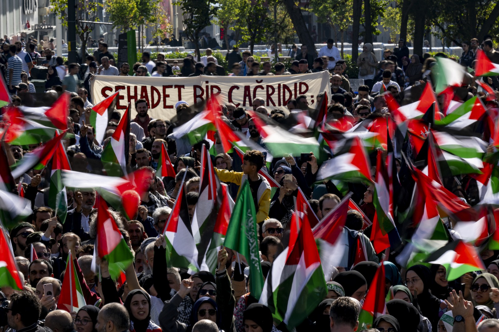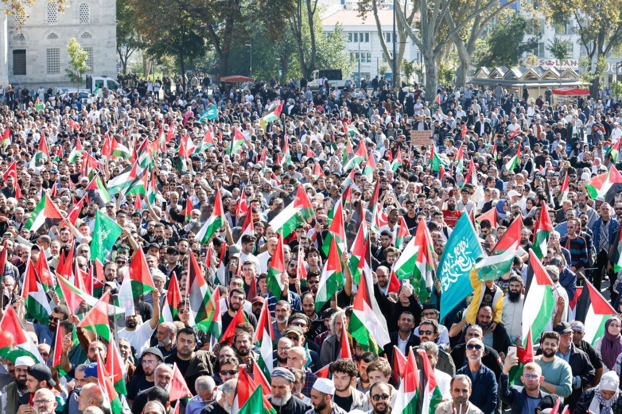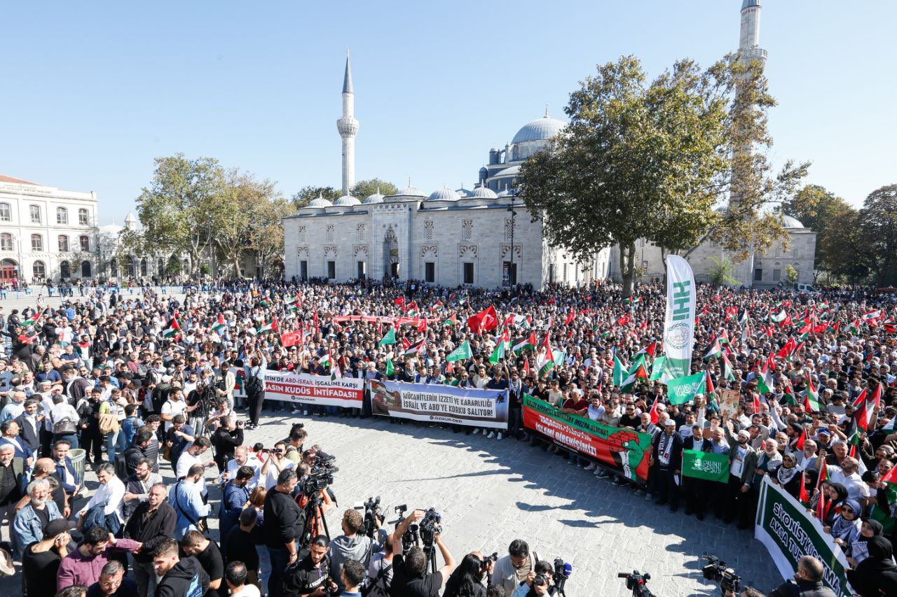 Türkiye’de İHH ve Özgür-Der’in çağrısı, çeşitli İslami kuruluşların da desteğiyle cuma namazı çıkışında Beyazıt Meydanı’nda toplanan Müslümanlar, Siyonist işgal rejiminin saldırılarında şehit olanlar için kılınan gıyabi cenaze namazının ardından Hamas’a desteklerini yinelemek için bir araya geldiler. Okunan Kur’an-ı Kerim’in ardından Özgür-Der Genel Başkanı Rıdvan Kaya söz aldı.