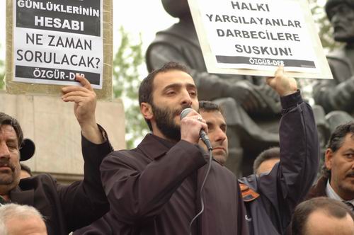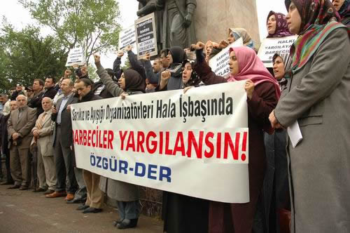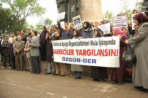 Darbe planlayanların hâlâ iş başında olduğunu ifade eden Özgür-Der, bugün Fatih Saraçhane Parkı’nda darbecilerin yargılanması; Sarıkız, Ayışığı ve Ergenekon düzenine son verilmesi çağrısında bulundu.