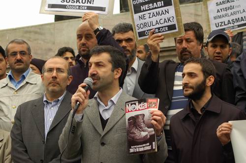 Özgür-Der Genel Başkanı Hülya Şekerci'nin son olarak konuyla ilgili basın bildirisini okuduğu eylem tekbirlerle sona erdi.