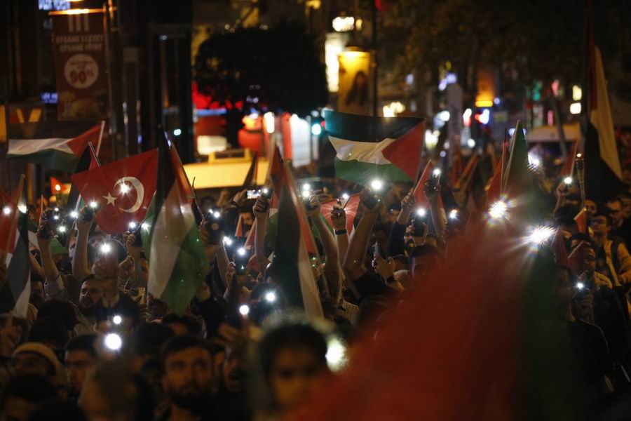 Fatih Camiinden Edirnekapı’ya yapılan yürüyüşte binlerce insan siyonist katliamları lanetlerken Gazzeli direnişçileri selamladı.