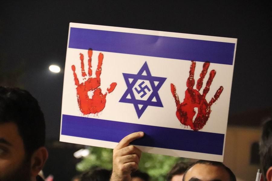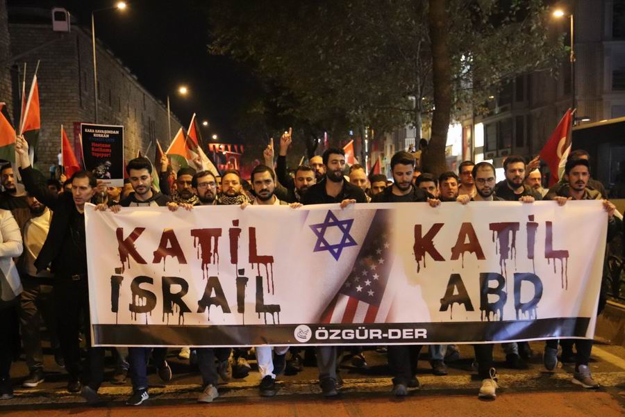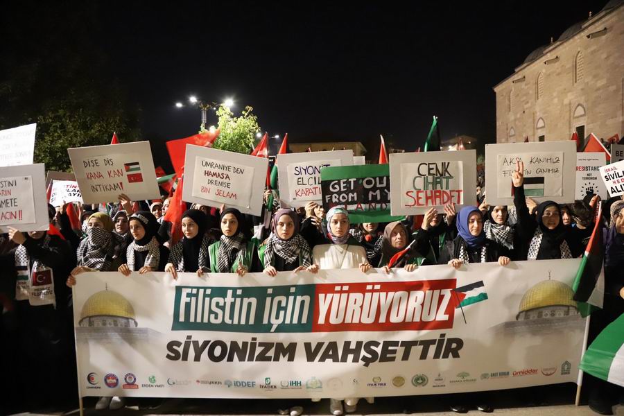 Yürüyüşte “Filistin Özgür Olana Dek Mücadele Devam Edecek!”, “Katil İsrail Katil ABD!”, “Mücahitlerin İzzeti ve Kararlılığı İsrail ve ADB’ye Korku Salıyor!”, “Filistin İçin Yürüyoruz! Siyonizm Vahşettir!” pankartları ile “Baby Killer Israel!”, “İnsanlık Vicdanını Kudüs’te Yitirdi!”, “İşgalciler Kaybedecek Direnenler Kazanacak!” yazılı dövizler taşındı.