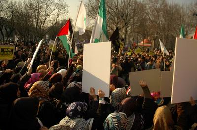 İslami kuruluşların ortak çağrısıyla, son günlerde yaşanan Siyonist katliamı tel'in ve Filistin İslami direnişinin yanında olunduğunu ifade etmek amacıyla Fatih Saraçhane Parkı'nda buluşuldu.