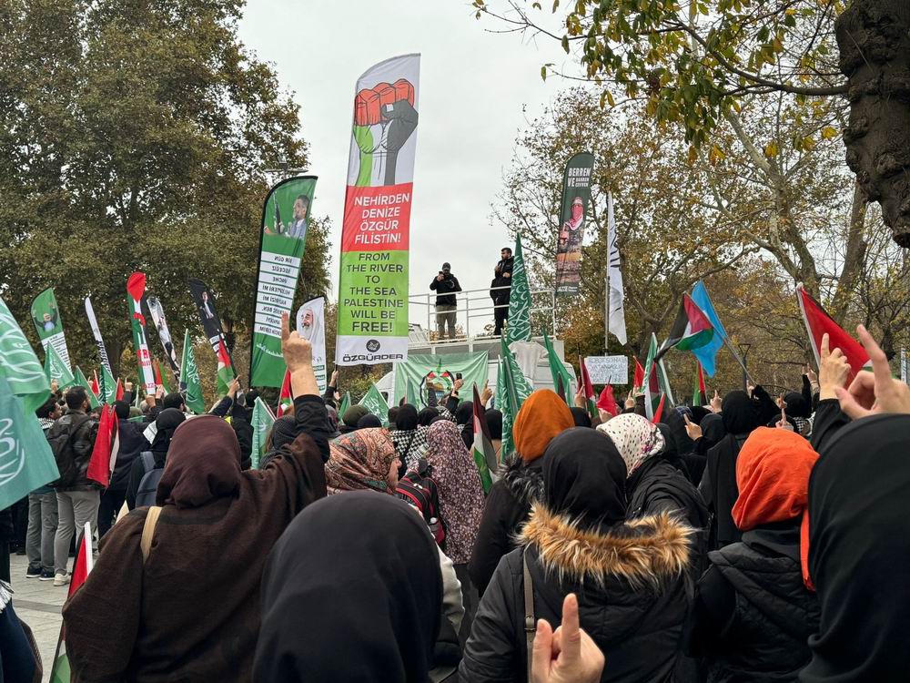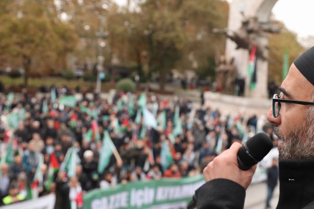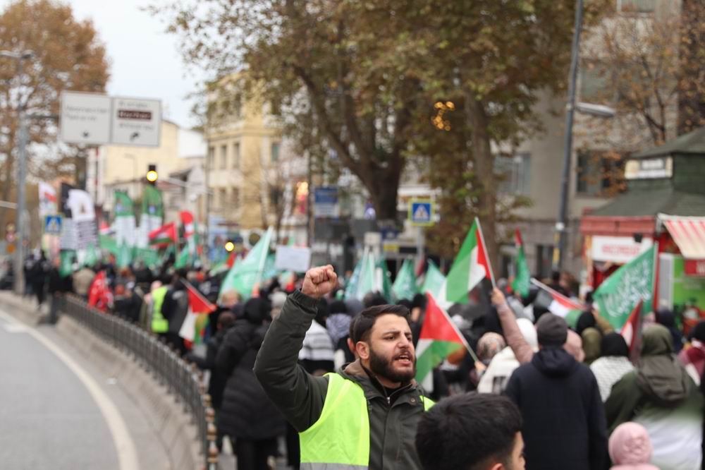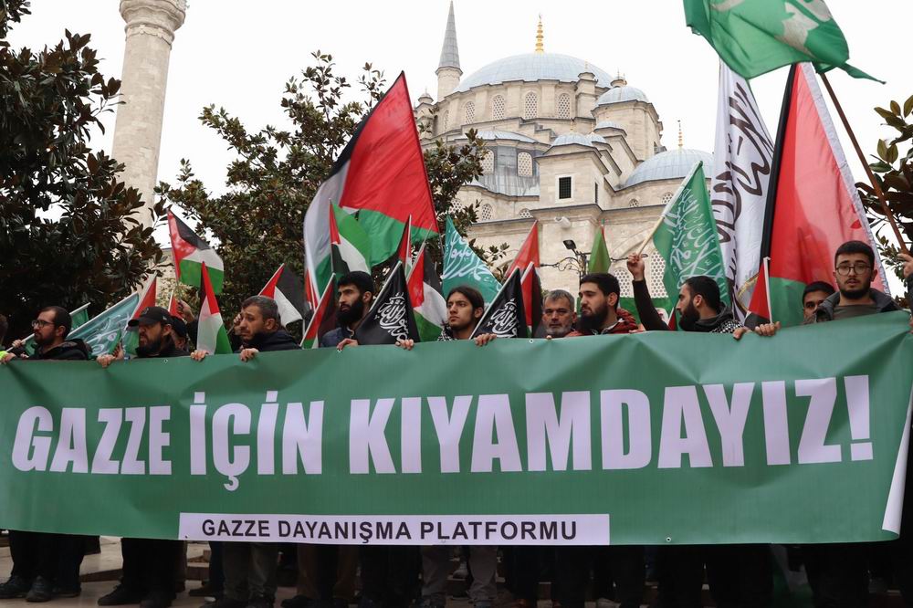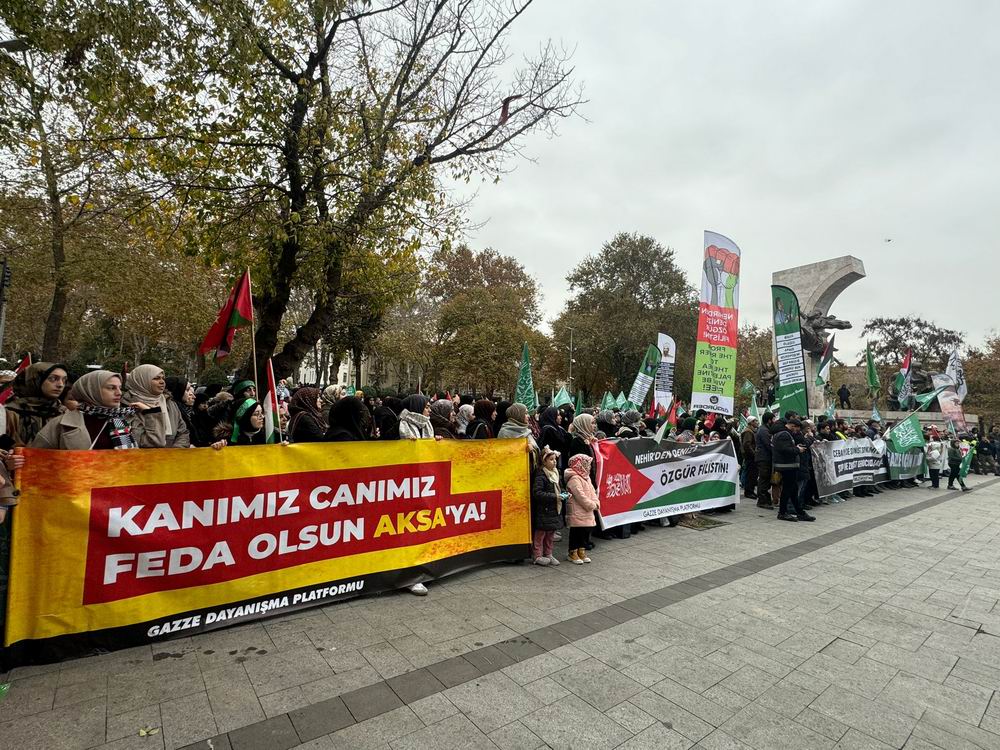 Gazze Dayanışma Platformu’nun çağrısıyla Gazze halkı için ikindi namazında Fatih Camiinde bir araya gelen müslümanlar, Saraçhane’ye yürüdü.