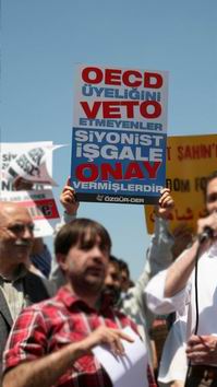 İşgal ve katliamlarla bölgede yer edinmeye çalışan İsrail'in sık sık "insan hakları karnesi"ndeki zayıflarını hatırlatan AK Parti Hükümetinin, İsrail'in OECD'ye üyelik sürecinde takındığı bu gayri ahlaki ve pragmatik tutumu açık bir işbirlikçilik suçu olarak görüyoruz. AK Parti Hükümetinin Siyonist İsrail ile ciddi hiçbir hesaplaşmaya girmeden, askeri ve diplomatik yaptırımlar alanına asla girmeksizin sürdürdüğü kamuoyuna yönelik popülist siyaset Siyonist çetenin OECD üyeliğinin veto edilmemesi ile resmen duvara çarpmıştır. Bu tavrıyla Hükümet, İsrail'e karşı sadece söylem düzeyinde kalan bir siyaset yürüttüğünü ve zulme karşı ciddi, cesur ve samimi olmadığını ikrar etmiştir.