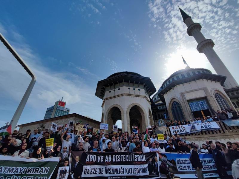 Özgür-Der’in çağrısıyla Taksim Camii önünde bir araya gelen Müslümanlar, Siyonist katliamların işbirlikçisi Batılı ülkeleri telin ederken Filistin halkının direnişine desteklerini yinelediler.