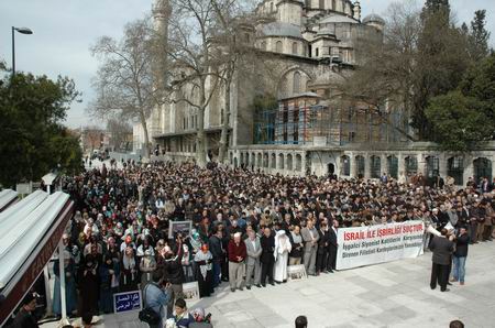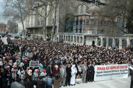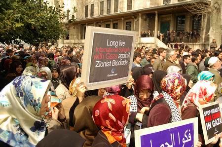 Bugün İslami kuruluşların ortak çağrısıyla öğle namazını müteakiben İstanbul Fatih Camii avlusunu dolduran Müslümanlar, Siyonist İsrail'i, ABD emperyalizmini ve işbirlikçi iktidarları kınayan bir protesto eylemi gerçekleştirdiler. Fatih Camii avlusunda saf oluşturan Müslümanlar "İsrail ile İşbirliği Suçtur! İşgalci Siyonist Katillerin Karşısında; Direnen Filistinli Kardeşlerimizin Yanındayız!" yazılı bir pankart açtılar. Ellerinde Gazze kuşatmasını protesto eden İngilizce ve Arapça yazılı dövizler de taşıyan topluluk Gazze'de şehit edilen tüm Filistinli kardeşlerimiz için gıyabi cenaze namazı kıldı.