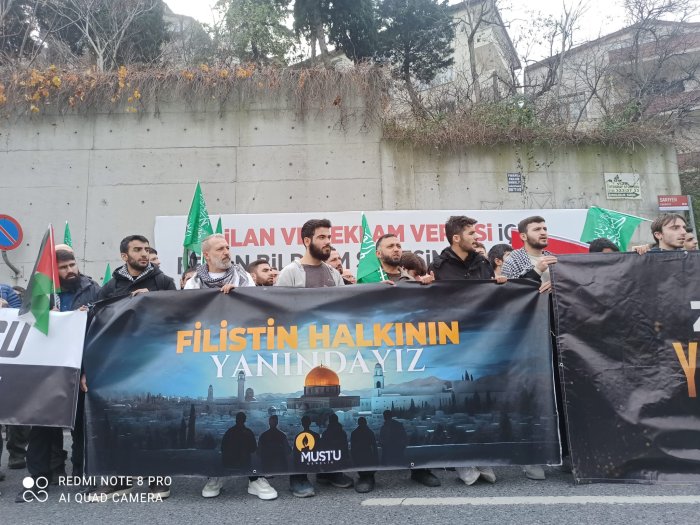 Bizler Filistin halkının kardeşleri ve haktan, adaletten yana tavır sahipleri olarak işgalci, barbar Siyonist çetenin suç ortaklığını yapan ABD yönetimini protesto ediyor, lanetliyor; masum insanlara karşı işlenen insanlık suçlarının ortaklığını yapan bu zalimlerin bir gün mutlaka yargılanıp, hak ettikleri cezaya çarptırılacaklarının altını çiziyoruz.