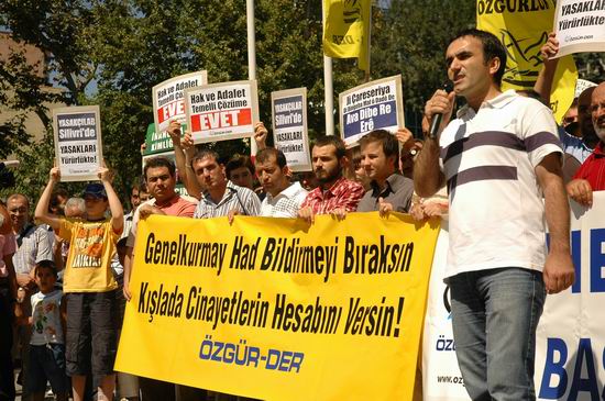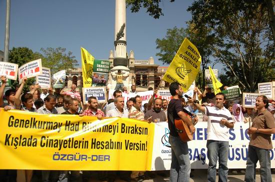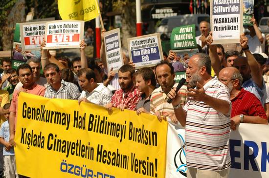 Başörtüsüne özgürlük için Ramazan ayı boyunca her Cumartesi Fatih Saraçhane Parkı'nda toplanan Özgür-Der mensupları; başörtüsünün yanı sıra geçen hafta Kürt sorununu gündeme getirmişlerdi. Bu haftaki eylemde eğitim adı altında askeriyede hayatlarını kaybedenlerin sorumlularının hesap vermesi gerektiği ifade edildi. Topluma ve siyasete had bildirmeye kalkan Genelkurmay'ın, kışladaki cinayetlerin hesabını vermesi gerektiği yüksek sesle dile getirildi.