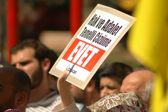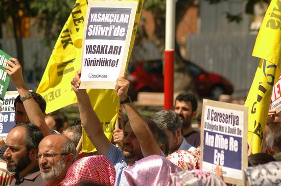 Murat Ayar'ın sunumunu yaptığı eylemde "Genelkurmay Had Bildirmeyi Bıraksın; Kışladaki Cinayetlerin Hesabını Versin!" ve "Herkes İçin Adalet Başörtüsüne Özgürlük!" yazılı pankartlar açıldı. Ayrıca eylemde "Yasakçılar Silivri'de Yasakları Yürürlükte!", "Hak ve Adalet Temelli Çözüme Evet!", "İnancına Örtüne Kimliğine Sahip Çık!" yazılı dövizler taşındı.