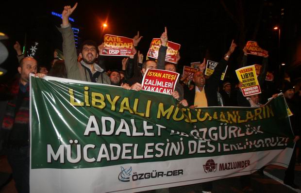 Libya ve Bahreyn halklarının kıyamı Özgür-Der, Mazlumder ve İHH tarafından yapılan bir yürüyüşle selamlandı; Libya’daki katliamlar Libya Konsolosluğu önünde protesto edildi.