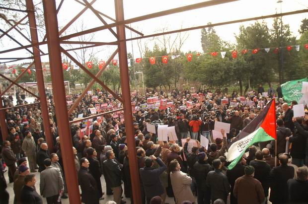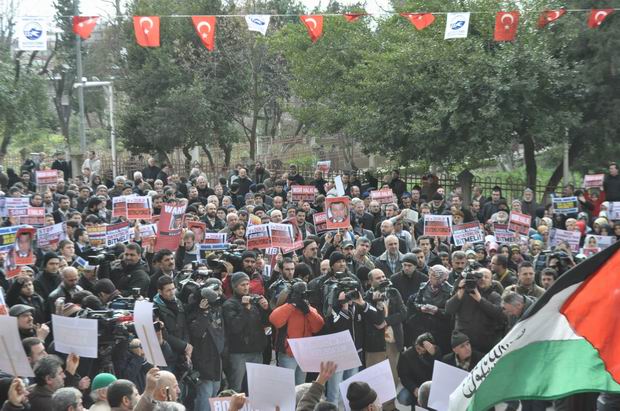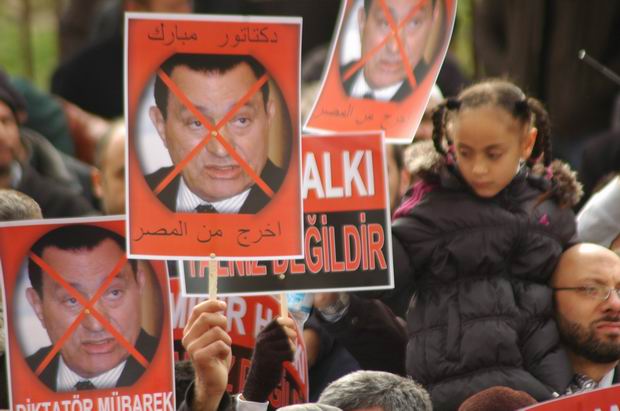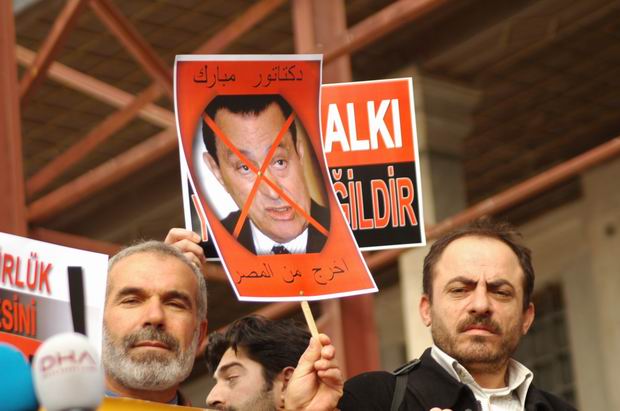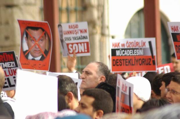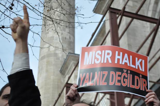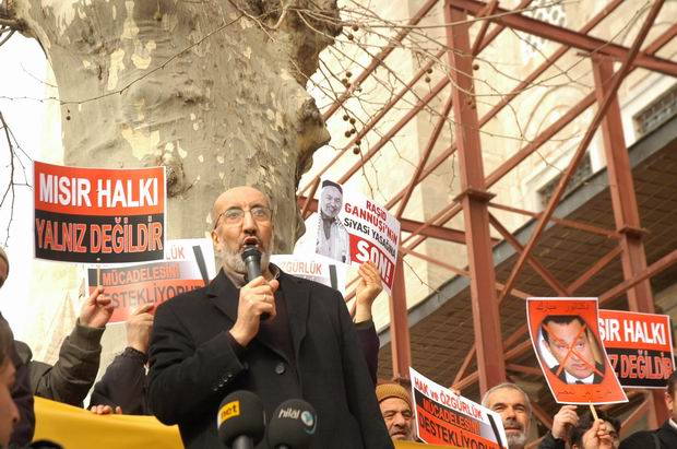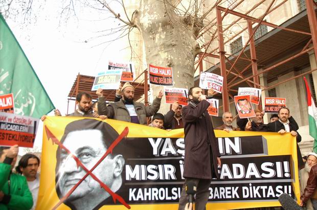 Özgür-Der, Mazlumder, İHH, Medeniyet Derneği, İnsan ve Medeniyet Hareketi, Anadolu Platformu, Fatih Akıncıları Derneği, Akabe Vakfı, Araştırma Kültür Vakfı ve Hikmet Vakfı'nın aralarında bulunduğu İslami kuruluşların birlikte organize ettiği eylemi sunan Murat Özer, Tunus'tan sonra Mısır halkının da laik-diktatör Hüsnü Mübarek'i çöküşün eşiğine getirdiğini belirtti. Basın açıklamasında Abdurrahman Dilipak, Rıdvan Kaya ve Cüneyt Sarıyaşar söz alarak topluluğa hitap ettiler.
