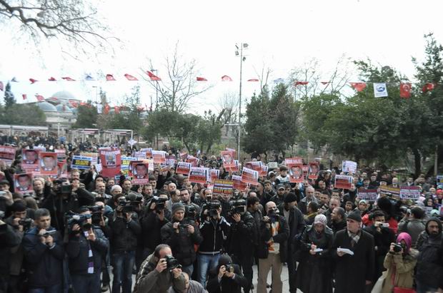 Tunus halkının Bin Ali diktatörünü devirmesinin ardından Mısır halkı da on yıllardır despotik tahakkümünü sürdüren Mübarek yönetimine karşı ayaklandı. Protestolar polis şiddetine rağmen devam ederken sokakları, meydanları özgürlük talebiyle dolduran Mısır halkıyla dayanışmak ve taleplerine destek vermek üzere İslami kuruluşlar bugün cuma namazı sonrasında Fatih Camii avlusunda kitlesel bir basın açıklamasıyla intifadayı selamladılar.