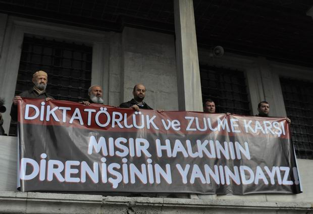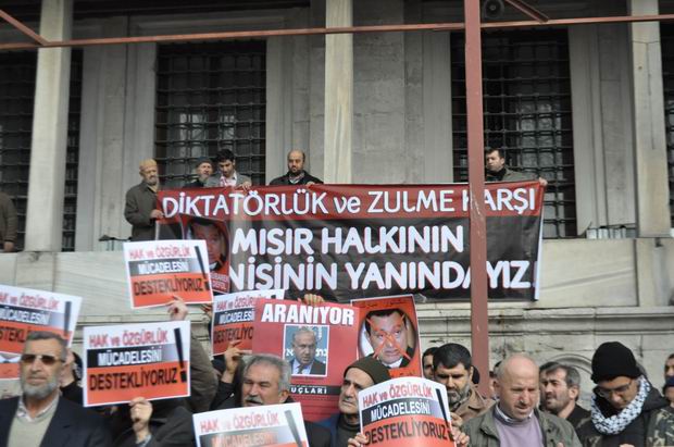 Mısır’da Mübarek karşıtı direniş, İstanbul Fatih camisinde gerçekleştirilen bir eylemle desteklendi.