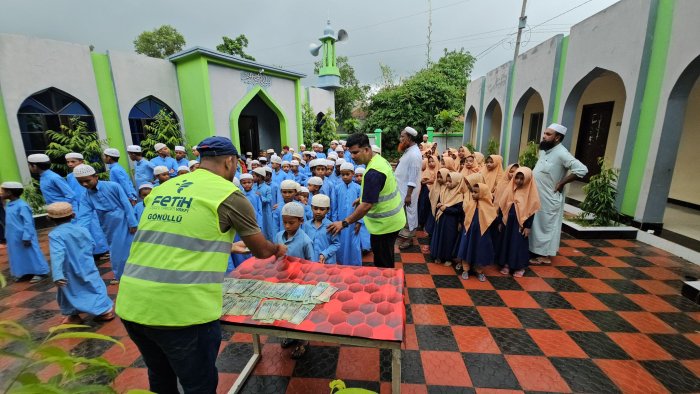 Hasina diktasından kurtulan Bangladeş’teki iki yetimhaneden birinde Kur'an-ı Kerim, diğerinde ise yetimlere harçlık dağıtıldı.