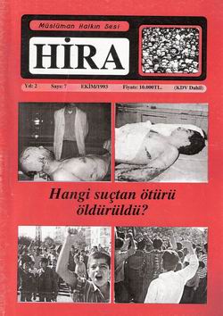 *Genel Muhteva: Derginin genel muhtevasını manşetler ve muhtelif yazılar üzerinden irdeleyen Üzer, Hira'nın ilk sayısını "İnkılap Güneşi" spotuyla Mayıs 1992'de yayınladığını, M. Said İpek'in sahibi ve yazıişleri müdürü, Ali Silvan'ın yayın yönetmeni ve Ahmet Altunç'un da müessese müdürü olarak öne çıktıklarını söyledi. Dergideki "İnkılap Güneşi" spotunun ise dördüncü sayıdan itibaren "Müslüman Halkın Sesi" spotuyla değiştirildiğini kaydetti.