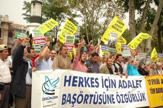 Ramazan ayı boyunca her Cumartesi günü Özgür-Der tarafından Fatih Saraçhane Parkı'nda gerçekleştirilen "başörtüsüne özgürlük" eylemlerinin sonuncusu yapıldı. Bu hafta 12 Eylül Darbesinin yıldönümü olması hasebiyle eylemin gündemi de darbeler idi. 12 Eylül paşalarının yanı sıra 28 Şubat ve 27 Nisan darbelerinin de sorumlularının yargılanması gerektiğinin ifade edildiği eylemde darbelerin ruhunun yaşadığı Ergenekon çetesinin de kökünün kurutulması çağrısında bulunuldu.