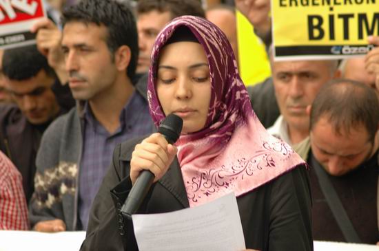 Özgür-Der adına, aşağıda tam metnini yayınladığımız basın bildirisinin Kevser Çakır tarafından okunduğu eylemde "Darbeciler Yargılansın, Gasp Edilen Haklar Geri Verilsin!", "Darbeciler Yargılansın Ergenekon Dağıtılsın!", "Sadece Kenan Evren Değil, Tüm Darbeciler Yargılansın!", "Cübbeli Darbe Düzenine Son!", "Direniş Adalet Özgürlük!", "Kahrolsun Halkın Düşmanı Cunta!", "Herkes İçin Adalet, Başörtüye Özgürlük!" şeklinde sloganlar atıldı.