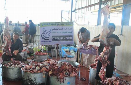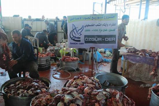 Özgür-Der ve İLKAV mensuplarının bir bölümü her yıl olduğu gibi bu yıl da kurbanlarını Gazze'de kestirdi.