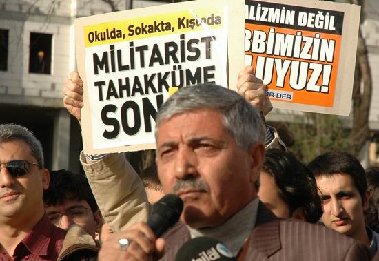 Eylemde söz alan Özgür-Der Genel Başkanı ve Haksöz Dergisi yazarı Rıdvan Kaya ise Türkiye'de askeriliğin bütün toplum için sorun olduğunun altını çizerek başladığı konuşmasında, tüm vatandaşların zorunlu askerlik sürecinde devletin kimliksizleştirme ve kişiliksizleştirme operasyonuna maruz kaldığını; saç tıraşından üniformaya, aşırı disiplinden resmi ideolojik doktrinasyona kadar türlü araçlarla devletin güç gösterisinde bulunduğunu vurguladı. Son günlerde ortaya çıkan kirli eylem planları ile darbecilik hastalığı ve halk düşmanlığı vasfı daha da netleşen ordunun, savaş açtığı değerlere sahip insanlara askerliği dayatarak toplumu iyice ezmeye çalıştığını ifade eden Kaya, hükümetin darbeci ve militarist yapıyı tasfiye etme sorumluluğuna dikkat çekti. Sadece Rabbimize kul olması gereken bizlerin bu uygulamaları bütünüyle ortadan kaldırmaya güç yetiremesek de zihnen, kalben bu zulme teslim olmamamız gerektiğini söyleyen Kaya, her fırsatta askerlik adı altında icra edilen zulmü teşhir etmek ve Enver Aydemir örneğinde olduğu gibi bu uygulamanın mağdurlarıyla dayanışma içinde olmak gerektiğini hatırlattı.