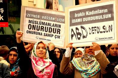 Irak'ta kadınların onurlarını korumalarının ve işgalci güçlere karşı direnmelerinin karşılığı ise hapis, işkence, tecavüz veya idam. Şu anda Ebu Gureyb gibi hapishanelerde binlerce kadın tutuklu bulunuyor. Ve bunlardan Bağdat'taki el-Kazimiye Hapishanesi'nde bulunan üç kadının; yani 25 yaşındaki Zeyneb Fadıl, 31 yaşındaki Vassan Talip ve 26 yaşındaki Liqa Ömer'in 3 Mart tarihinde idam edileceğini işgal altındaki Irak Hükümeti ilan etmiş bulunuyor.