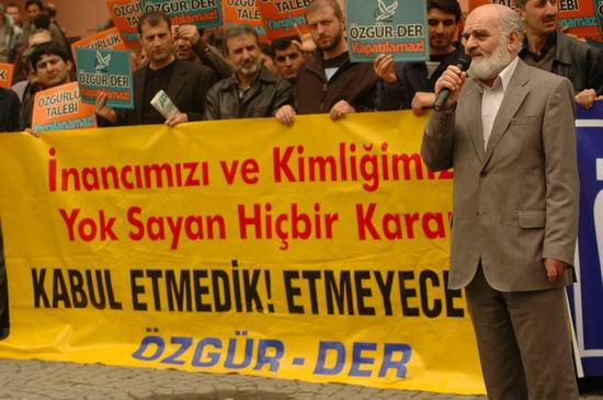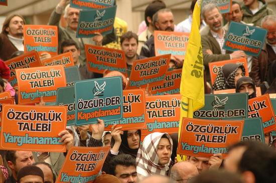 Türkiye'de yaşanan hak ihlalleri başta olmak üzere, küresel çapta işlenen insanlık suçlarına karşı tam 10 yıldır İslami kimlikli bir muhalif tutum sergileyen Özgür Düşünce ve Eğitim Hakları Derneği (Özgür-Der) devlet tarafından kapatılmak isteniyor. Özgür-Der 1999 yılında Türkiye'de örtülü askeri darbe koşullarında başta başörtüsü yasağı olmak üzere, devlet tarafından icra edilen sistematik baskı ve yasaklara karşı tepkileri örgütlemek üzere kurulmuş ve şu anda Türkiye'nin muhtelif şehirlerinde 15 ayrı temsilciliği olan bir dernek.