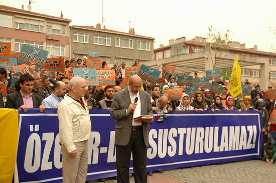 Eylemde ilk sözü Özgür-Der adına alan Haksöz Dergisi yazarı Rıdvan Kaya, dava süreci hakkında bilgi verdikten sonra, İslami kimliğimizi korumanın ve İslami kimlikli mücadele etmenin önemine dikkat çekti. Derneğin kapatılmasının önemli olmadığı; önemli olanın Müslümanca yaşamak ve kulluk sorumluluğumuzu yerine getirmek olduğunun altını çizen Kaya, dayatmalar karşısında insanca yaşam, özgürlük ve adalet talebimizden asla vazgeçmeyeceğimizi vurguladı. Bugüne kadar İslami kimlikleriyle baskılara karşı direndiklerini, bundan sonra da direneceklerini belirten Kaya, "Yargılanıyoruz ama biz biliyoruz ki haklıyız ve inanıyoruz ki mutlaka kazanacağız!" dedi.