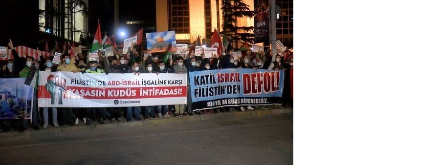 Eylem sırasında “Filistin’de ABD-İsrail İşgaline Karşı, Yaşasın Kudüs İntifadası” ve “Katil İsrail Filistin’den Defol!” yazılı pankartlar açıldı.