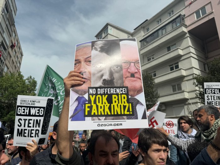 Almanya Cumhurbaşkanı Steinmeier, Gazze'deki vahşet devam ederken Türkiye’ye bir ziyaret gerçekleştiriyor. Dün (22 Nisan) Sirkeci Garı'ndaki gezisini protestolar sebebiyle erken sonlandıran Steinmeier'in Türkiye ziyaretine yönelik tepkilerin bugünkü durağı ise İstanbul'daki Almanya Konsolosluğu'ydu.