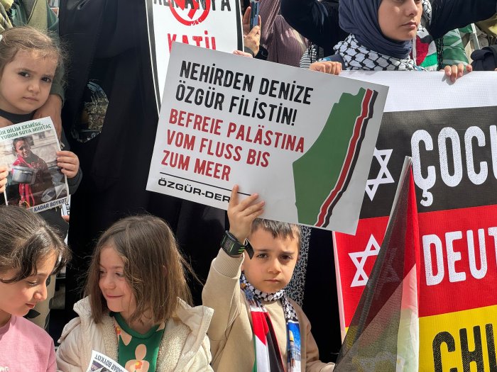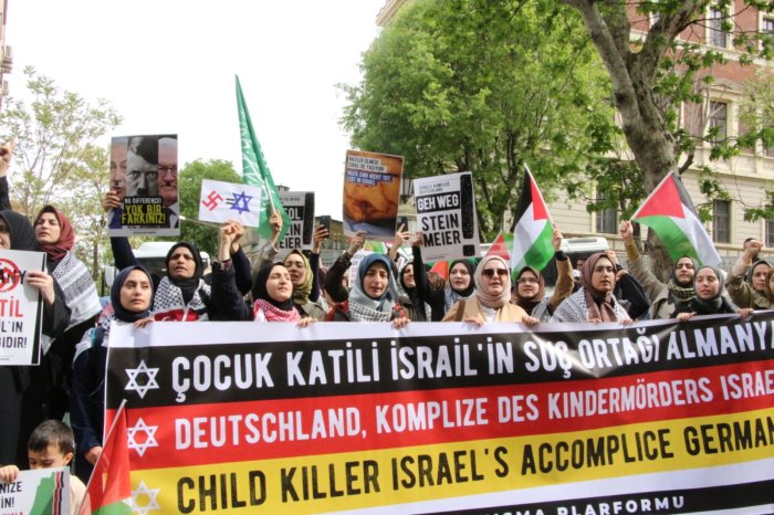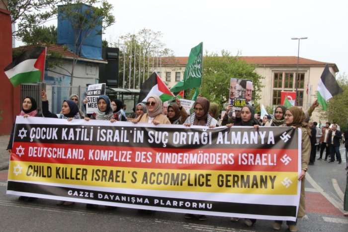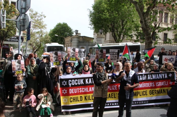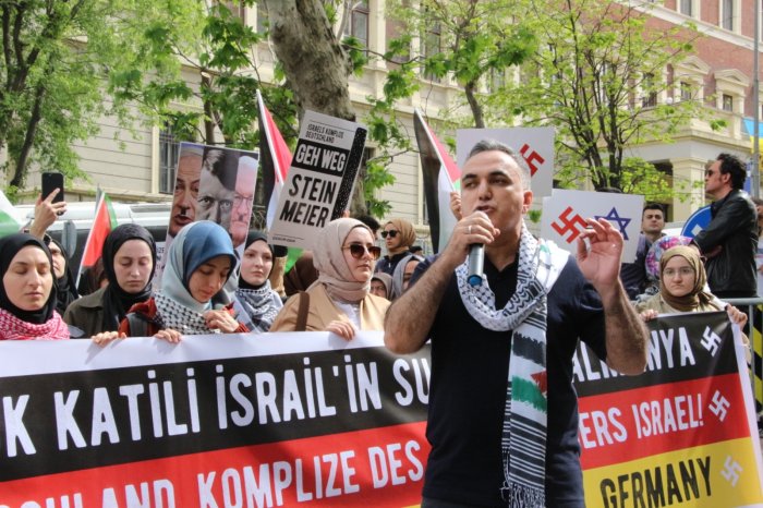 "Almanya devleti II. Dünya Savaşı’nda insanlık için utanç kaynağı olan katliamlara imza atarak soykırım gerçekleştirdi. Ancak bunun bedelini Almanya değil Müslümanlar ödedi. Almanya işlediği suça karşı Siyonist çeteye destek vererek başka katliamlara imza atıyor. Almanya hükümeti isterse Yahudilere kendi ülkesinden toprak verebilir ama bunun bedelini Filistin halkına ödetemez. Asla bu yapılan zulümlerin normalleştirilmesine izin vermeyeceğiz. İşledikleri suçları olağanlaştırmaya çalışan vahşet çetelerine karşı her platformda direnişi ve insanlık onurunu savunmaya devam edeceğiz.”