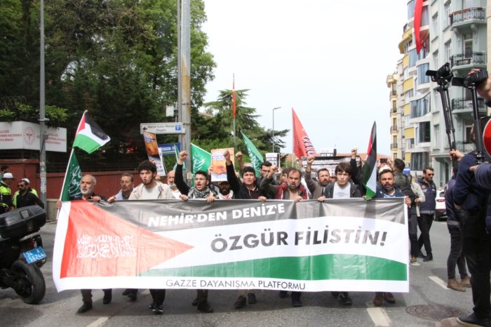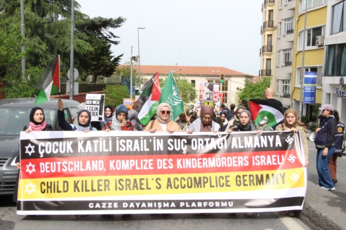 Almanya Cumhurbaşkanı Steinmeier'in Türkiye ziyaretine yönelik protestolar devam ederken Gazze Dayanışma Platformu, İstanbul'daki Almanya Konsolosluğu'na yürüdü.