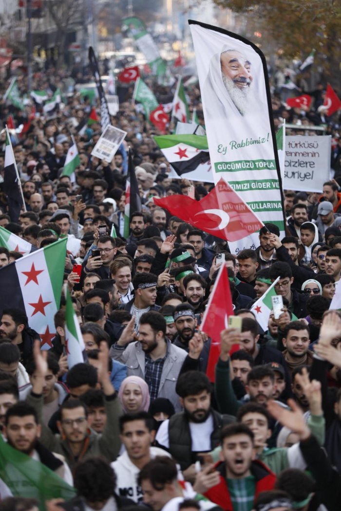 Suriye’nin 61 yıllık Baas diktasından kurtarılarak özgürleştirilmesi Suriyeli ve Türkiyeli Müslümanların katılımıyla İstanbul’da coşkuyla kutlandı.