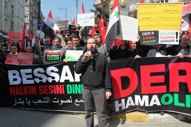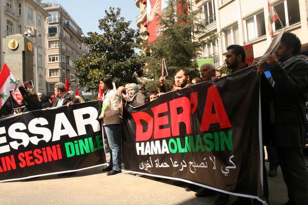 İslami kuruluşların temsilcileri ve İstanbul'da yaşayan bir grup Suriye vatandaşı İstanbul Teşvikiye'deki Suriye Konsolosluğu önünde bir basın açıklaması yaptılar. "Der'a Hama Olmasın!" "Beşar Halkın Sesini Dinle!" yazılı pankartlar açan topluluk eylemde Suriye yönetiminin bir an önce reformlar gerçekleştirmesi çağrısında bulunuldu.