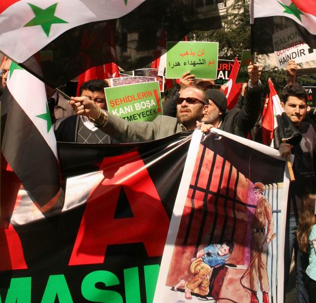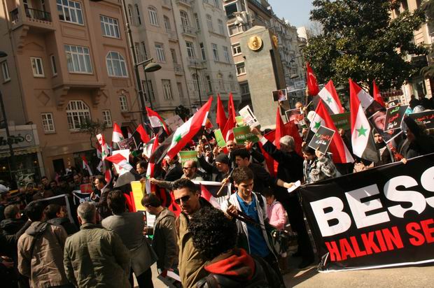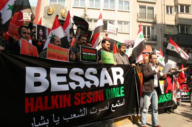 "Suriye Halkı Yalnız Değildir!", "Der'a Hama Olmasın!", "Diktatörler Tek Tek Devrilecek!" sloganlarının yanı sıra Arapça sloganların da atıldığı eylem ortak basın açıklamasının okunmasıyla sona erdi.