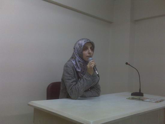 Konuklara yapılan ikramın ardından söz alan Özgür-Der İzmir Şube Başkanı Nurcan Büyük, ramazan ayı ve ardından gelen bayram ile ilgili olarak müslümanların yapması gerekenler üzerinde durdu. Ramazanın arınma ayı olduğu kadar direnme ayı da olduğunu vurgulayan Büyük, vahyi yaşamlaştırma ve kitlelere ulaştırma hususunda böylesi zamanların değerlendirilmesi gerektiğini ifade etti. Kur'an'ı sürekli yüzünden okuyan bir toplumun yüzüne açık açık Kur'an'ı okumanın öneminden bahseden Büyük, bu konunun kilit nokta olduğunu vurguladı. Bayramın Arapça karşılığı olan 'ıyd' kelimesinin 'aslına dönmek' anlamına geldiğini belirten Büyük, bu konuda gerekli olan kardeşliğin sağlanması konusunda ise sun'î ayrılıkların bırakılıp vahiy merkezli ve tevhid temelli bir yapılanmanın oluşturulup geliştirilmesinin önemine değindi.