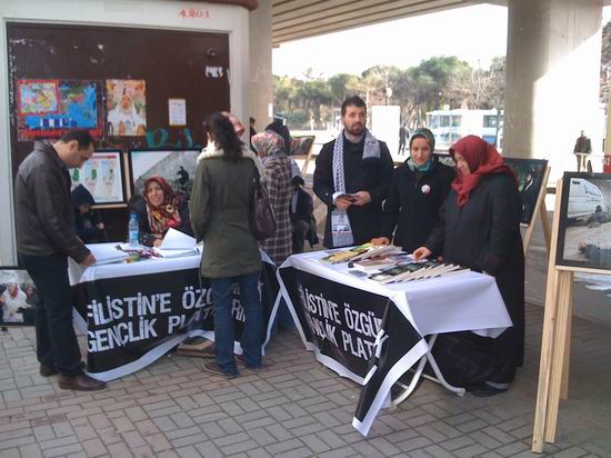 'İsrail sorunu'nun tarihçesinin yer aldığı 'Dünden Bugüne Filistin' adlı bir kitapçık ve 'Siyonizm'e Karşı İnsanlıktan Yana' başlıklı bir bildirinin dağıtıldığı sergide, Filistin direnişinin tanıtılması amacıyla bir de stand açıldı. İntifada Öyküleri, Pir-i İntifada: Şeyh Ahmed Yasin ve Dünden Bugüne Filistin kitaplarının bulunduğu masada, Grup Yürüyüş ve Kardeşlik Çağrısı'nın direniş ve intifada temalı eserlerden oluşan albümleri de bulunuyor.