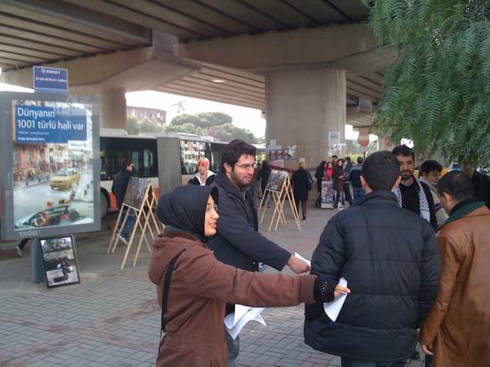 Özellikle öğrencilerin yoğun ilgi gösterdiği sergide, şu ana kadar dört bin adet bildiri dağıtıldı. Haftasonuna kadar açık kalması beklenen sergide, İsrail'e maddî destek sağlayan markalara karşı da boykot çağrısı yapılıyor. Kırk adet fotoğrafa yer verilen serginin izleyen günlerde değişik ilçelerde açılması planlanıyor.