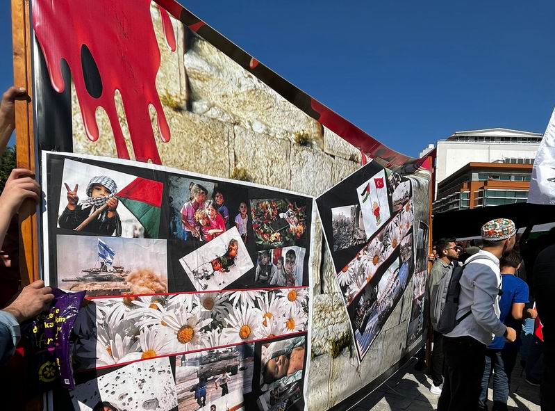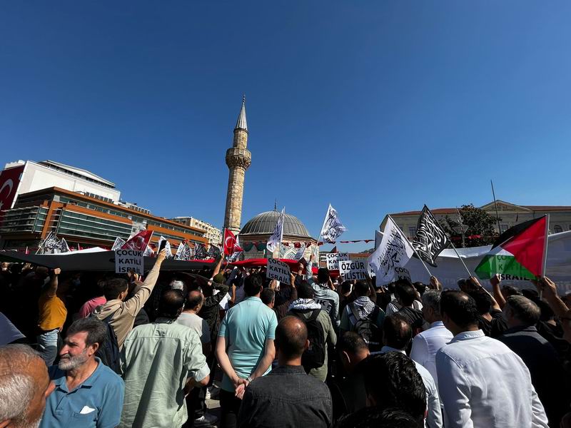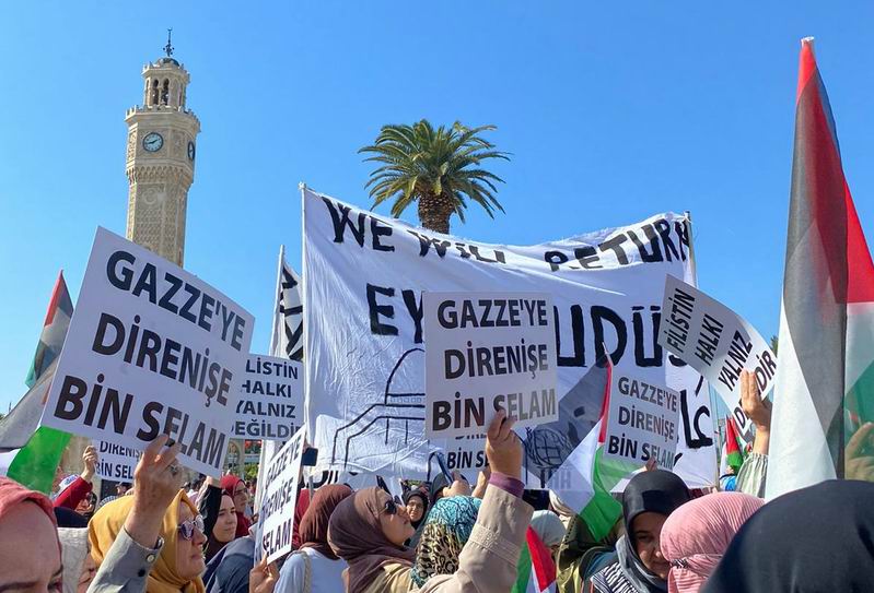 Today, here in Izmir and throughout Turkey, we stand in solidarity with our friends in Palestine against Israel's unlawful practices and attacks. We call on Turkey and all international mechanisms to take action. These countries must open a humanitarian corridor to the millions of oppressed people who are under siege in Gaza.
